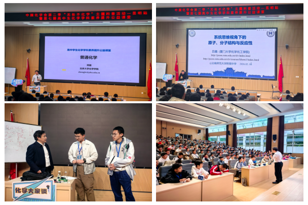 活动同时还邀请北京大学化学与分子工程学院裴坚教授和郑捷教授、厦门大学化学化工学院吕鑫教授分别就有机化学、结构化学、普通化学的内容给师生们授课。授课专家以例题为切入点,引导学生在日常学习中注重思维方式的培养;用生动的生活实例作比喻,让学生更好地理解学科学习中的知识点;用互动提问式教学方法贯穿讲课,为在座老师提供教学方法演示。
