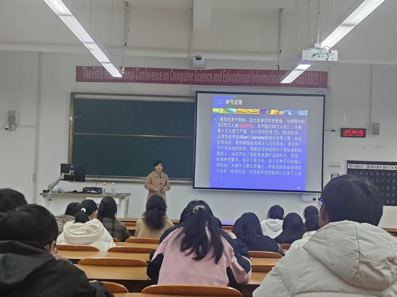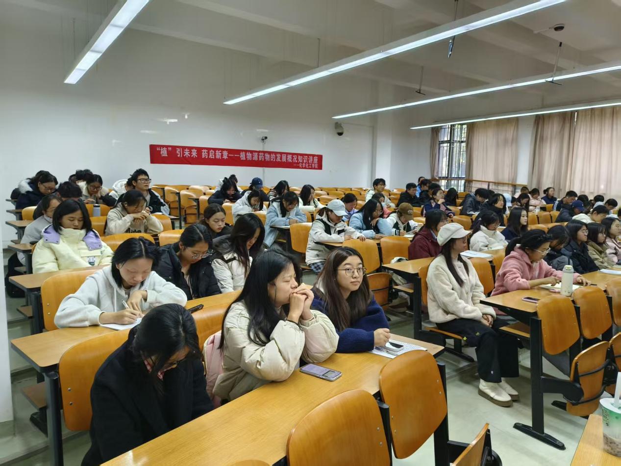 为深入学习贯彻习近平新时代中国特色社会主义思想,推动主题教育走深走实,充分发挥教工党支部“传帮带”作用和学生党支部“先锋队”功能,构建师生党建共同体,11月27日下午,化学化工学院教工第二党支部与学生第二党支部在汇学2幢104教室联合举办“植”引未来,药启新章——植物源药物发展概况”主题活动。两个支部全体党员、入党积极分子及化学化工学院、生命科学学院、能源与环境科学学院共100余人参加。活动由教工第二党支部书记李秋霞教授主持。