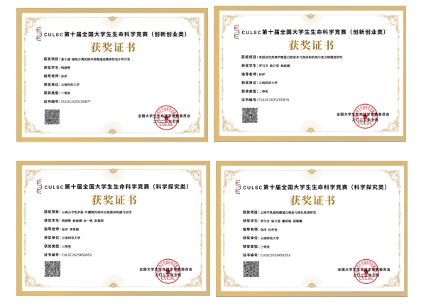 近日,第十届全国大学生生命科学竞赛(创新创业类、科学探究类)比赛传来捷报,云南师范大学化学化工学院学院钱婧雅、罗匀言两位同学分别负责的参赛团队,其参赛项目《云南山羊乳多肽-叶酸靶向纳米自组装体构建与应用》和《云南羊乳脂球膜蛋白制备与理化性质研究》项目凭借扎实的研究基础、创新的科学设计和出色的现场答辩,荣获国家二等奖与国家三等奖各2项。