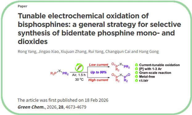 近日,化学化工学院首届“石先拔尖班”2025级本科生杨荣以第一作者身份在期刊《Green Chemistry》(绿色化学,IF=9.3)上发表学术研究论文。该刊由英国皇家化学会(RSC)创办,是有机化学领域经典期刊。云南师范大学为论文第一完成单位,化学化工学院龚行教授担任通讯作者。